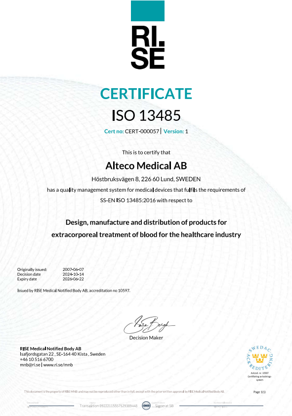 Alteco Medical AB • Höstbruksvägen 8 • SE-226 60 Lund • Sweden